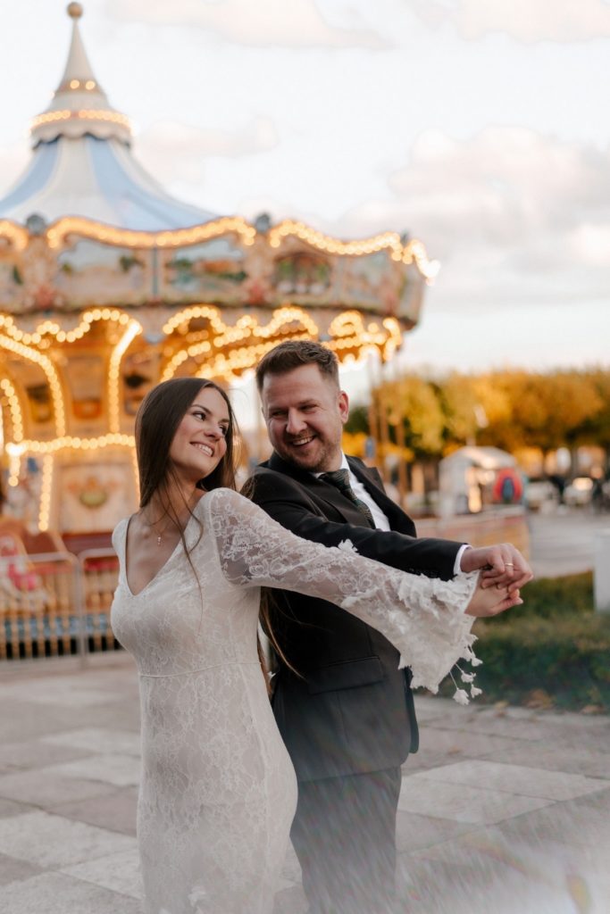 Sopocka Karuzela i lampeczki cudowne jako tło pod kadry. Nie tylko dla par, świetne miejsce również do sesji rodzinnych. Chociaż lepiej zostawić ten punkt na koniec … dzieciakom może się karuzela spodobać za bardzo :p W przypadku sesji dla par, bez problemu prześliśmy do kolejnego miejsca. 🙂